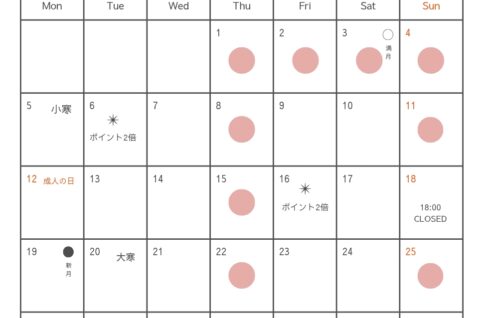 2026年1月の営業日のご案内です。 空き状況は、WEB予約フォームにてご確認いただけます。公式LINE、お電話でもお気軽にお問合せくださいませ☆ ご予約方法は3つ★ ①お電話 (お電話受付時間9:00~18:00) ※...